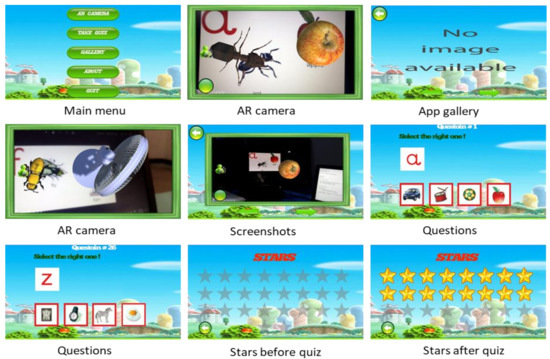 - Safar, A.H.; Al-Jafar, A.A.; Al-Yousefi, Z.H. The effectiveness of using augmented reality apps in teaching the English alphabet to kindergarten children: A case study in the State of Kuwait. EURASIA J. Math. Sci. Technol. Educ. 2016, 13, 417–440. [Google Scholar] [CrossRef]