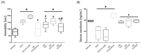 3.6. Serum Serotonin Level and Immobility Time
