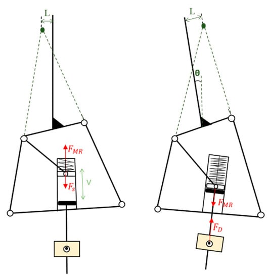 Compared with the mechanical passive knee joint, the variable damping prosthetic knee has the advantages of providing different damping torque, enhancing the stability, adapting to environmental changes, and the walking speed adaption []. It improves gait symmetry and reduces musculoskeletal degeneration of transfemoral amputees to a degree []. The power prosthetic knee enables amputees to perform activities such as walking up stairs and standing from a sitting position. However, the active prosthetic knee is energy-intensive and requires a large actuator, which increases the weight of the prosthetic knee and reduces the battery life. The biological knee provides active and passive torque during walking []. Active or passive microprocessor-controlled prosthetic knees cannot simulate the hybrid work mode. The prosthetic knee with active-passive control is a solution to solve the problem. Thus, the prosthetic knee combines the advantages of powered and variable damping prosthetic knees—namely semi-active prosthetic knee, which has shown good potential for improving the walking performance and ensuring wearability. Lambrecht et al. proposed the design of a semi-active knee prosthesis. The power was added to a hydraulic knee by a pump driven by an electric motor. The active torque and passive damping were adjusted by a hydraulic pump and variable position valve. A compact, low power system while providing the benefits of an active device was achieved by the hybrid design []. Pillai et al. presented a design for a knee-ankle prosthesis which ultimately controlled two linear hydraulic actuators using a single pump. The hydraulic nature of the prosthetic allows it to function in a semi-active mode []. Awad et al. characterized the dynamic coupling interaction between the thigh and an electrical semi-active above knee prosthesis. The prosthetic knee worked as a passive knee in part of the gait cycle phases and as an active knee prosthesis during other parts []. Park et al. presented a prosthetic knee operated in the semi-active and active modes. The semi-active mode is achieved from a flow mode magnetorheological (MR) damper, while the active mode is obtained from an electronically commutated (EC) motor []. These studies provided a helpful method to the design of semi-active prosthetic knee.