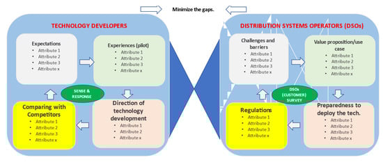 The main takeaway and contribution of this paper was the introduction of the sense and response approach in the energy domain combined with the broader survey. This provided a better understanding of the customer’s (DSOs) needs and the technology developers’ perceptions on their technology value propositions. This two-way communication and interaction minimized the gap and facilitated rapid learning by sensing the most critical challenges and responding accordingly. At a higher level of decision making, e.g., the EU, this could elicit in-depth insight into which direction of research is relevant and should be prioritized to overcome the current and future challenges of the DSOs as well as the right technology based on the need and urgency.