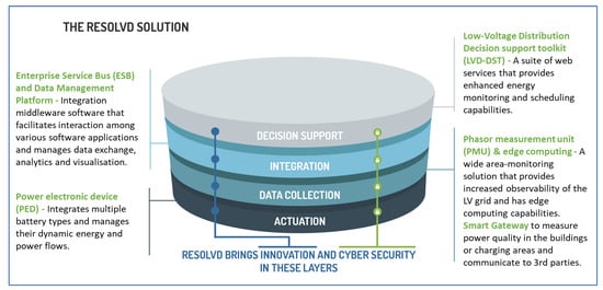 The H2020 RESOLVD solution comprised of technologies falling under four layer of DSO operation, as shown in the figure.
