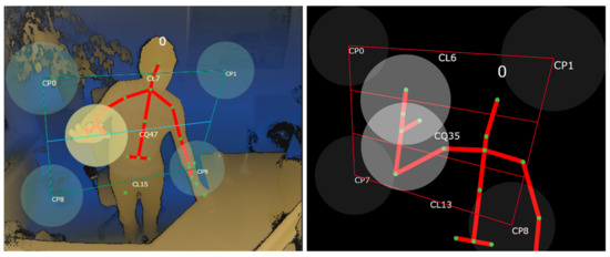 Our goal for collision detection was real-time capability, which is 30 frames per second or above, as defined by the frame rate of the 3D input. The experiments showed that a worse-case scenario allowed about 100,000 verifications in single CPU thread mode. With multi-threading optimization, the load can be distributed evenly between the CPU treads allowing practically a million sphere–sphere collisions to be detected in real time. Considering six persons that can be detected by Kinect V2 with their respective 25 skeletal input SpacePoints, this sums up to 150 necessary collision verifications per ColPoint. This leads to total of 6000–7000 possible ColPoints that can be safely checked every frame. To further reduce the computational cost, a hull SpacePoint or a sphere-tree approach could be added. It would be also interesting to port the algorithm to a GPU.