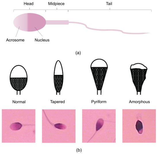 - Auger, J. Assessing human sperm morphology: Top models, underdogs or biometrics? Asian J. Androl. 2010, 12, 36. [Google Scholar] [CrossRef] [PubMed]