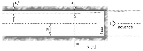 | radial displacement at a location separated by distance from the back of the tunnel face | |