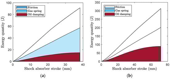 In this subsection, the percentage of strut friction energy absorption of the strut total energy absorption during the landing process is calculated based on the numerical model of the landing gear established in Section 2. Two performance criteria are considered in this work to express the effect of strut friction on energy absorption: energy quantity and energy absorption efficiency . The two performance criteria are defined as