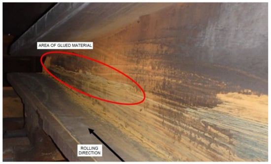 - The rolled material was glued in the order of finish of the hot rolling mill. The strip led to the stools rubbing against the rulers. The cause of this is the high temperature of the material (it is soft) and the contact surface not being perfectly smooth. The rolled material was glued to the rulers (Figure 4).