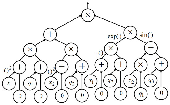 GP codes the mathematical expression in the form of computational tree. Figure 1 shows the computational tree for the example mathematical expression (30).