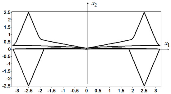 where , is a partial solution of the Equation (13) with the initial conditions , is a trajectory from (16), .