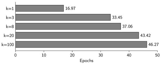 It is worth noting that the selection of neural network parameters has a significant impact on the quality of its operation. As part of the research described here, both the effect of the number of neurons in the hidden layer of the network and the type of activation function used in it were checked. It can be seen that the network achieves the best results for 20 (or 100) neurons in the hidden layer—both the recognition efficiency is the highest, amounting to 82.00 % (or 83.75 %), and the MSE error is the smallest—0.0114 (or 0.0110). A network with more neurons in the hidden layer learns over more epochs, and each epoch takes longer (because more operations have to be performed). It can also be emphasized that the testing process consists only of a one-time multiplication of the input signal by the matrix of selected weights, and therefore the time needed to carry out the testing process is imperceptible; therefore, the once learned network can recognize patterns without the need to guarantee its high computing power. As part of this study, both the input database and the input signal data size are small, and thus the learning time is imperceptible; however, in the case of large data sets or feeding a larger data vector into the input, the operating time can be significantly extended. The solution to problems with long network training time is to use a graphics processor, which is adapted to perform parallel calculations, and thus guarantees the acceleration of numerical calculations performed on it.