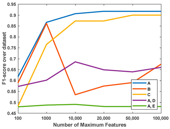 | Number of Maximum Features | Accuracy (Acc) and F1 Scores Over Datasets | |||||||||
