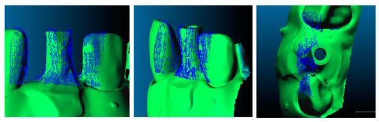 Trueness was defined as the closeness between the experimental and reference data sets (Figure 5) assessed by the discrepancy between them, which was automatically calculated by the software.