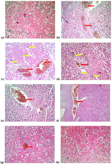 4.4. Serum Levels of Kidney Function and Kidney Histopathological Changes