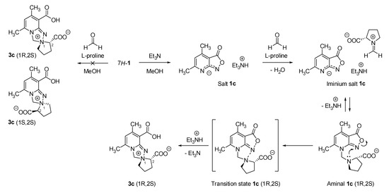 In our previous work, we have reported that isoxazolone 1 reacts with iminium salt derived from L-proline only in the presence of a base, e.g., triethylamine (Scheme 2) [5]. Hence, the investigated tandem reaction is a base-promoted process, which in the case of L-proline transformation leads to single diastereoisomer 3c.