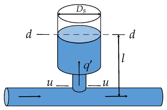 For a throttled surge tank installed in the system shown in Figure 4, the equation of motion is applied to the fluid in the pipeline between the upstream and downstream ends, and the friction term is linearized while the mean flow conditions are subtracted.