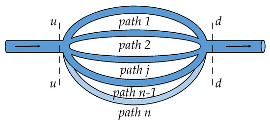 For the parallel system in Figure 5 with no forcing function, the field matrix of path j is expressed as . Then, the overall field transfer matrix of the whole parallel system is