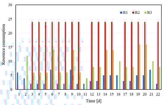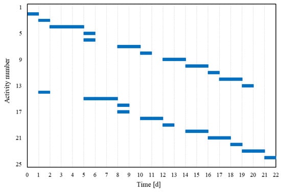 - Goncharov, E.N.; Leonov, V.V. Genetic Algorithm for the Resource-Constrained Project Scheduling Problem. Autom Remote Control 2017, 78, 1101–1114. [Google Scholar] [CrossRef]