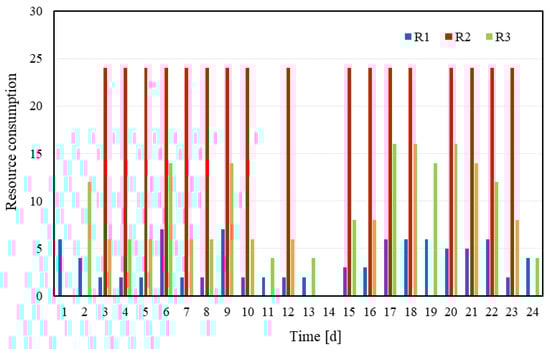 - Chand, S.; Singh, H.K.; Ray, T. A Heuristic Algorithm for Solving Resource Constrained Project Scheduling Problems. In Proceedings of the 2017 IEEE Congress on Evolutionary Computation (CEC), San Sebastián, Spain, 5–8 June 2017; pp. 225–232. [Google Scholar]
