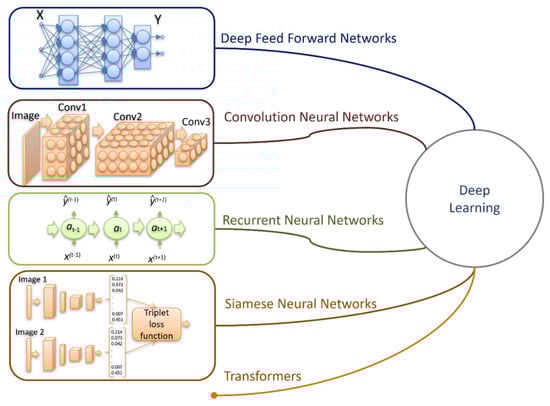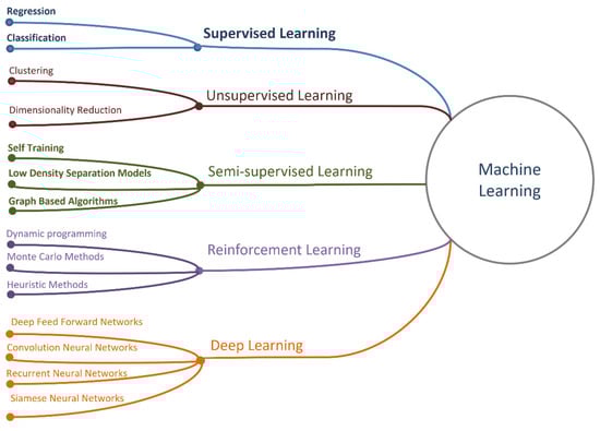 The classification of machine learning models was considered in [37,38,39,40]. ML methods are divided into five classes [41] (Figure 2):