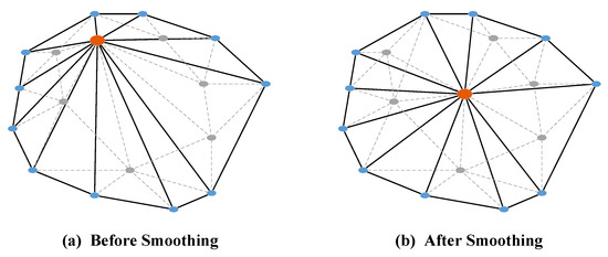 29] has been presented. However, there is a shortcoming in the previously proposed ordinary Laplacian mesh smoothing algorithm. Specifically, the potential invalid nodes will be created in the concave area of the mesh. In FEM, the creation of invalid nodes will lead to distorted elements, which will strongly reduce the computational accuracy [