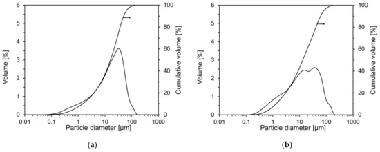 Measured PSDs of raw materials: (a) OPC; (b) FA.