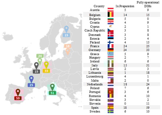 - European Commission. Digital Innovation Hubs (DIHs) in Europe. Available online: https://ec.europa.eu/digital-single-market/en/digital-innovation-hubs (accessed on 24 November 2020).