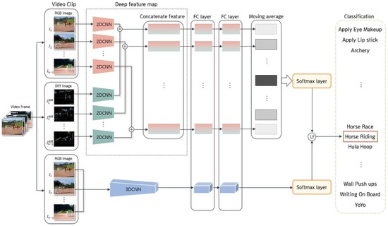 10]. Tran’s C3D takes 16 frames as an input, which is not sufficient to analyze a long-term video. Although existing C3D-based approaches include some spatial–temporal information, they cannot completely represent the temporal relationship between each frame. To incorporate the inter-frame relationship, both spatial and temporal information need to be taken into account at the same time. In this context, optical-flow-based methods estimate motion between two temporally adjacent pixels in video frames. Lucas and Kanade used optical flow to recognize actions [