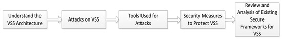 After the launch of the Mirai attack and its consequences in the year 2016, there has been a dramatic increase in studies related to attacks and vulnerabilities in the VSS domain. The articles have discussed the loopholes and flaws in the IoT networks. For our review, we have considered the peer-reviewed articles from the year 2016 to 2021. Keywords used for the literature survey are as follows: video surveillance systems, attacks on VSS, security frameworks for VSS, privacy issues with IP camera and botnet. To understand the security loopholes and possible solutions to mitigate the threats in VSS, this paper follows the following steps (Figure 3) to articulate the security issues of VSS.