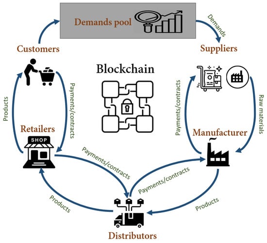 We can view a supply chain as an organized and systematic network between a company and its suppliers to manufacture and sell a particular product to the final customer, aimed at reducing costs and being competitive in the market. It consists of different processes, data and information flows, people, entities, and other resources. Simply, supply chain covers all the stages and entities involved in delivering a product from its original state to the final customer, starting from supplying and transforming raw materials into a manufactured product, moving the product in the market, and distributing them to the final customer. Overall, supply chain processes rotate in-between five entities including suppliers, manufacturer, distributors, Retailers, and consumers, as shown in Figure 2. Every entity in the supply chain delivers items to another entity against the agreed terms and payments. In modern supply-chain management systems, these agreements, payments, and deliveries are facilitated by blockchains.
