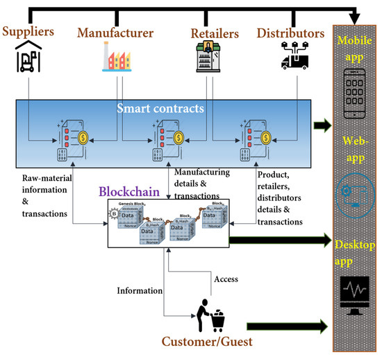 In recent developments, blockchain has been used in supply chain in different ways to handle security and privacy issues [21,22,23,24,25,26]. Importantly, blockchain integrated supply chain solutions are good in providing security and privacy of data that does not allow to modify the data records or to misuse the data. Also, such solutions facilitate audit for security and privacy violations as it has full trail of interactions among communicating parties.