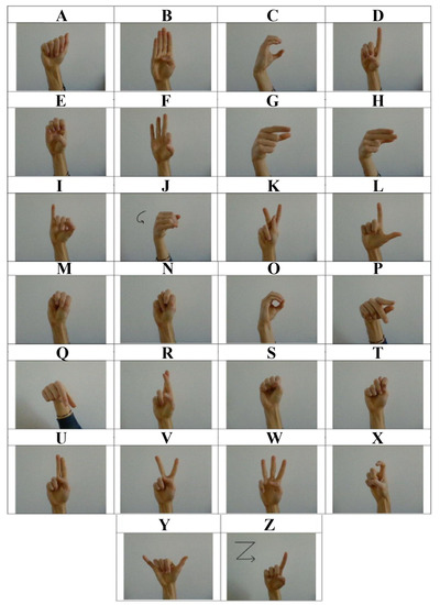 - ASL Sign Language Alphabet Pictures [Minus J, Z]. Available online: https://www.kaggle.com/signnteam/asl-sign-language-pictures-minus-j-z (accessed on 25 April 2021).
