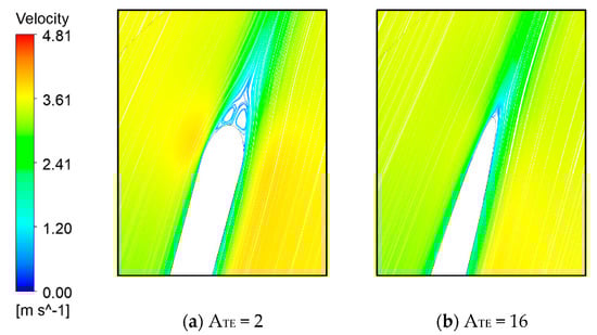 For these reasons, there are many studies focused on blade trailing edge rather than leading edge to improve blade performance. For a case in point, there is a study that modified the blunt trailing edge thickness of the airfoil to improve the aerodynamic performance of a wind turbine [47]. In addition, the blade trailing edge profile also has a significant effect on pump performance, and there is a case where pressure pulsations in a centrifugal pump were reduced through modification of the blade trailing edge profile [48].