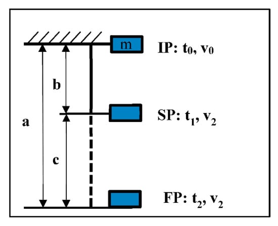Two pneumatic jacks were applied in a trout-processing system in head-cutting and cleaning subsystems. As the piston moves downwards during the extraction step, the jack is expected to prevent the subset from free falling. To know whether the pneumatic jack will empower or prevent free fall, we investigated the piston velocity in free-fall conditions from a height of 180 mm. The falling situation is presented in Figure 13. In this figure, IP, SP, and FP are the initial, start, and final positions of the head-cutting subsystem.
