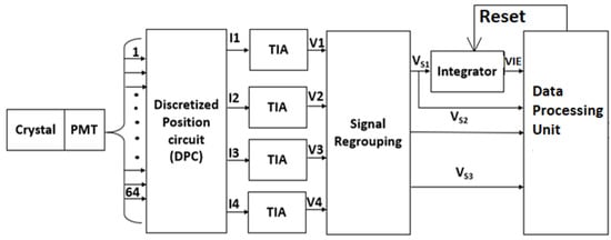 - Olcott, P.D.; Talcott, J.A.; Levin, C.S.; Habte, F.; Foudray, A.M.K. Compact readout electronics for Position Sensitive Photomultiplier Tubes. In Proceedings of the IEEE Nuclear Science Symposium Conference Record; IEEE: Piscataway, NJ, USA, 2003; Volume 3, pp. 1962–1966. [Google Scholar]