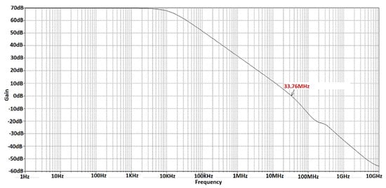 Open loop gain of proposed operational amplifier having a unity gain frequency of 33.76 MHz.