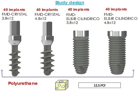 The aim of this study is to evaluate the primary stability obtained using polyurethane in a block of two different implant designs, consisting of different microgeometry, shape, and pitch of the implant threads.