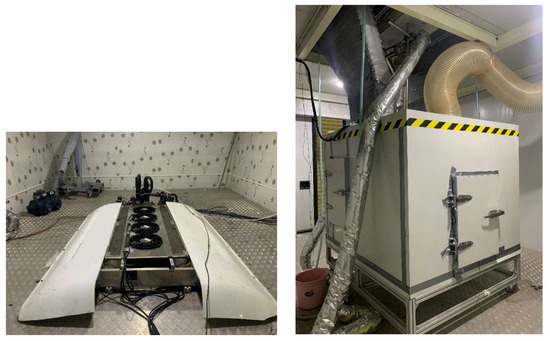 To investigate the impacts of refrigerant charge on system performance in the transcritical CO2 refrigeration system for electric buses, a series of steady-state tests were conducted under different refrigerant charges, different EEV opening degrees and different ambient temperatures. The experiments were carried out in the upper and lower separated enthalpy difference chamber, both of which can independently control the environment temperature and humidity. The photos of the test rig in both parts of the enthalpy difference chamber are shown in Figure 2. The outdoor ambient temperatures were set to 35 °C, 38 °C and 40 °C in the experiments, while the indoor dry/wet bulb temperatures were set to 27 °C/19.5 °C. Furthermore, the air flow rates of the indoor and outdoor fans were kept constant at 3100 m3·h−1 and 8800 m3·h−1, respectively. The discharge pressure and temperature of the compressor were controlled to not exceed the aforementioned safety limits, while the compressor speed was set to 3600 RPM in the whole experimental campaign. In addition, the opening of the EEV is reduced by 30 steps per second in the beginning and 10 steps when the system is close to the optimal state. The optimal values of each parameter were obtained in the experiment.