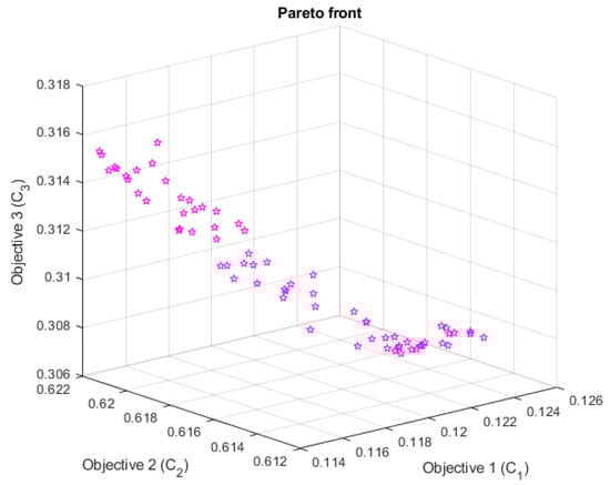 Multiple solutions coexist forming the Pareto front displayed in Figure 6. Without adding supplementary information about the desired result, all the nondominated points form a potential optimal solution.