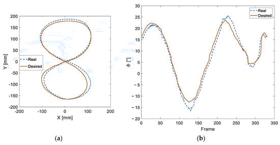 Variations between the desired and the real (a) trajectories and (b) orientations.