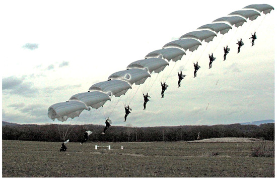 - Kalavsky, P. Directive for Parachute and Paratrooper Equipment Testing. Slovak Aeronautical Institute (SLI) Kosice, 2019 (Accepted by Military Aviation Authority of the Slovak Republic). Available online: http://www.sli.sk/phocadownload/osvedcenia/pzvt.pdf (accessed on 10 December 2020).