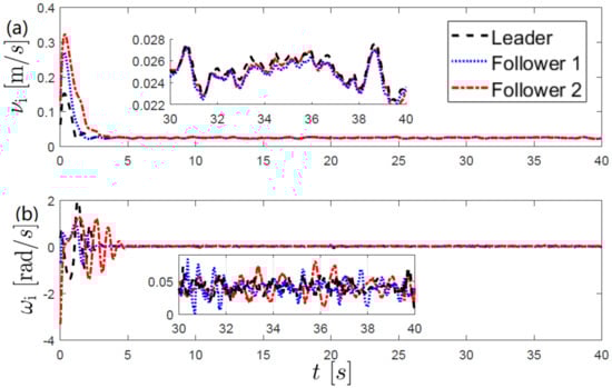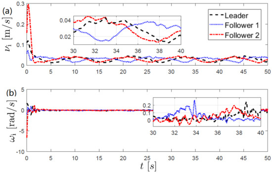 where represents the direction of the Cartesian velocity and n is the number of slave robots. Finally, and are the linear and angular velocities, respectively. The orientation angle and the Cartesian velocity satisfy the nonholonomic constraint