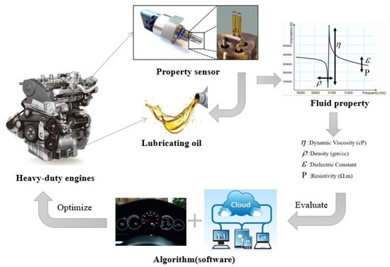 In association with a specific oil (15W40 grade oil, which is designated for use in heavy-duty truck engines) condition algorithm with the main strategy described in this paper, the fluid property sensor is able to directly monitor the heavy-duty truck engine oil conditions, predict remaining oil life and achieve optimization of oil change intervals, minimize the risk of dramatic engine failure, and reduce maintenance costs.