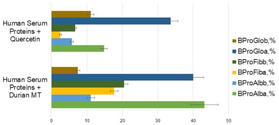 The binding properties (%) between human serum proteins and polyphenols extracted from durian pulp are shown in Figure 9.