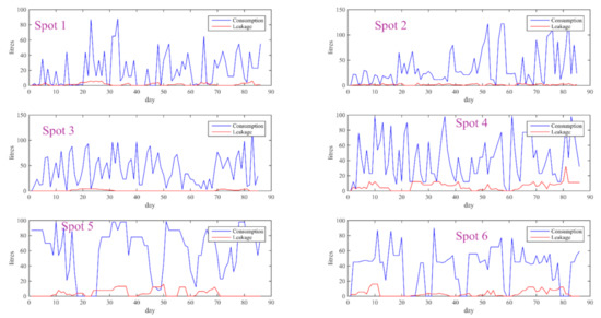 The above equations are used only in the nighttime. So, it might be interesting to know how the volume or amount of leakage can be known for 24 h. As presented in the algorithm above to find leakage, a unitary method can be used to generalize the leakage after knowing the leakage amount for some hours in the night time.