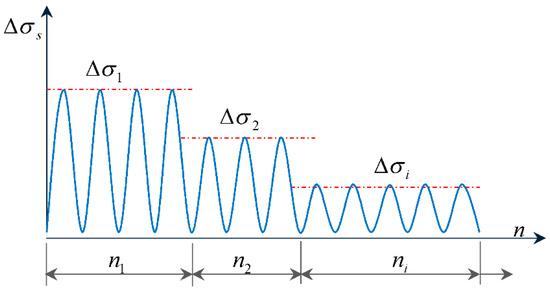 The M–H model can well consider the loading sequence effects. Combined with Equation (7) and the cumulative damage model shown in Equation (6), the calculation formula based on nonlinear cumulative damage can be achieved after loading classification as follows [18]: