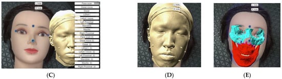 A 24-year-old male visited the department of oral and maxillofacial surgery for orthognathic surgery. Radiographic optical markers (Marker, Dio Co., Ltd.; Busan, Korea) were attached to the patient’s face; a cone beam CT was used (Hitachi, Marunouchi, Japan), and facial scan data were obtained with a handheld scanner (Artec Space Spider; Artec Group; Luxembourg). Skin and skull 3D models were reconstructed with Mimics software (18.0, Materialise, Leuven, Belgium), facial scan and oral scan 3D models were imported. With a registration system (Mimics software), the facial scan model was registered to the 3D skin model generated from the CBCT, based on the optical markers (Figure 1).