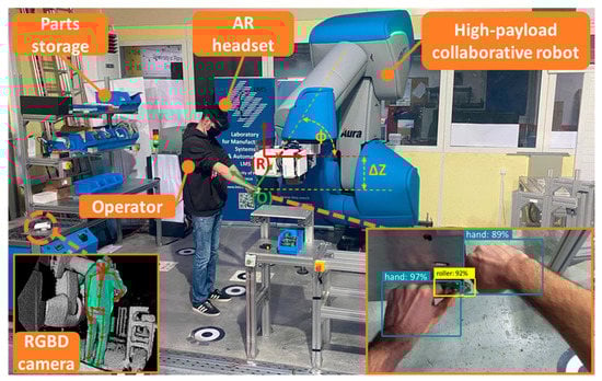 Applications of human–robot collaboration (HRC) have already made their way into industrial practice, hence the Industry 4.0 revolution [], allowing human operators and robots to coexist in the same space [,]. HRC applications offer a number of advantages over non-collaborative ones, as they allow to combine benefits of both actors, namely humans and robots. Robots can offer high accuracy and repeatability, can lift heavy weights, and can reduce the cycle time compared to a merely manual production. On the other hand, humans show high levels of cognition and dexterity. Safety concerns arise though in HRC applications, as robots have to share space or tasks with humans and without proper application human safety may be violated [].