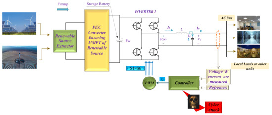 Typical layout of a single-phase distributed generation unit in front of a cyber-attack.