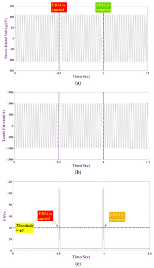 In this case, the efficiency of the FSVs in FDIA detection is considered by manipulating the voltage reference signal’s amplitude to simulate the FDIA.