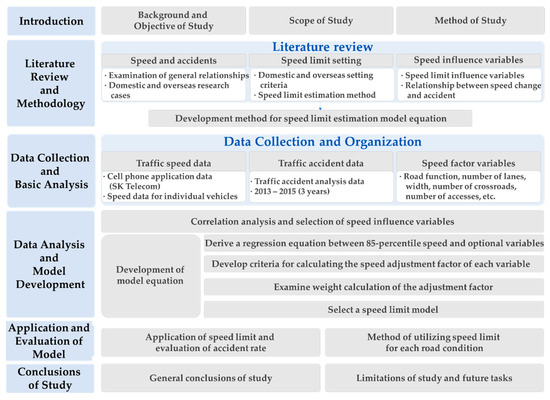 The subject roads are one-way roads with two or more lanes in Seoul. The contents and process of this study are outlined in Figure 1.