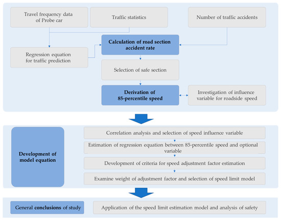 The process for the development of the speed limit estimation model equation is illustrated in Figure 6.